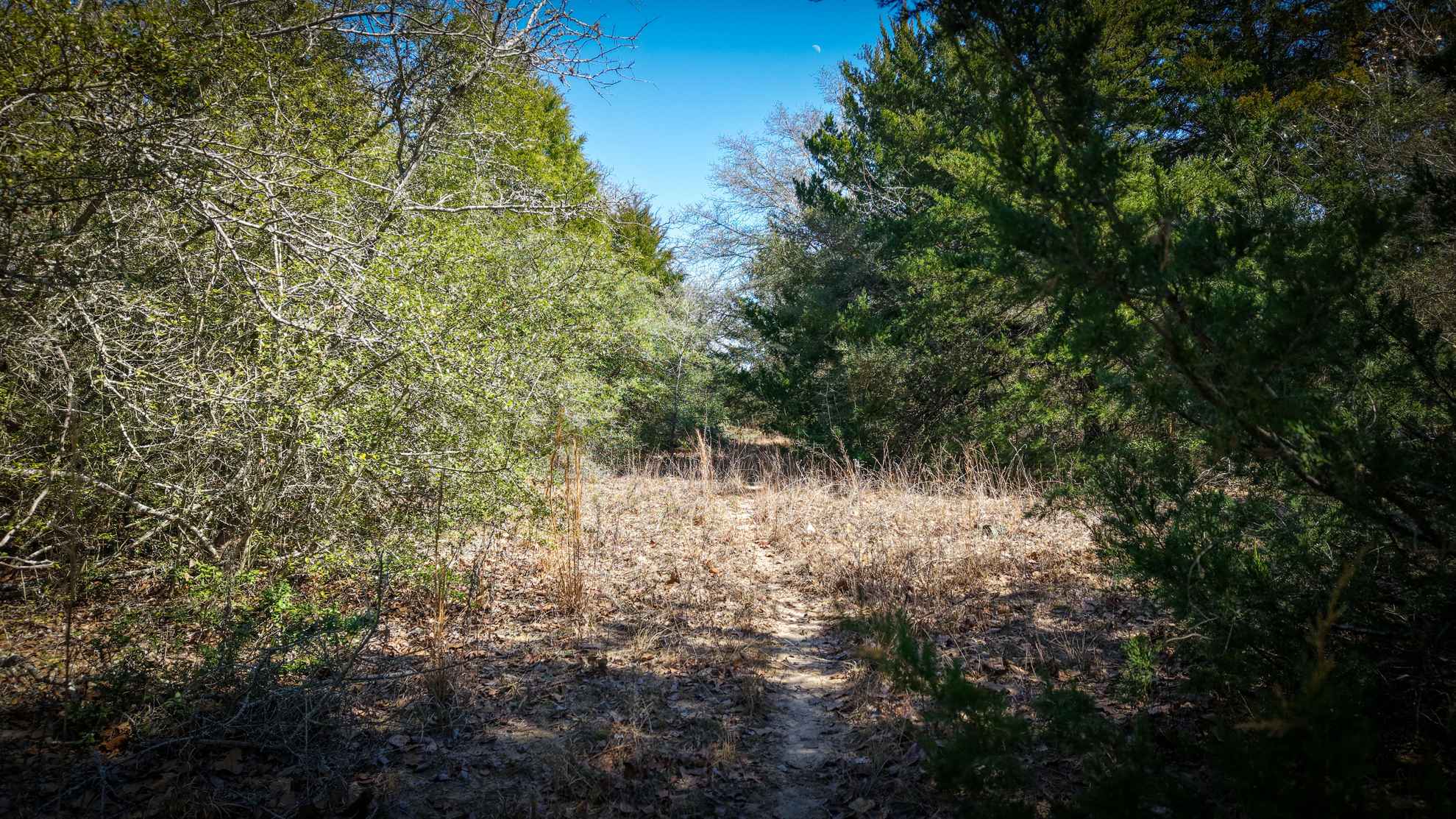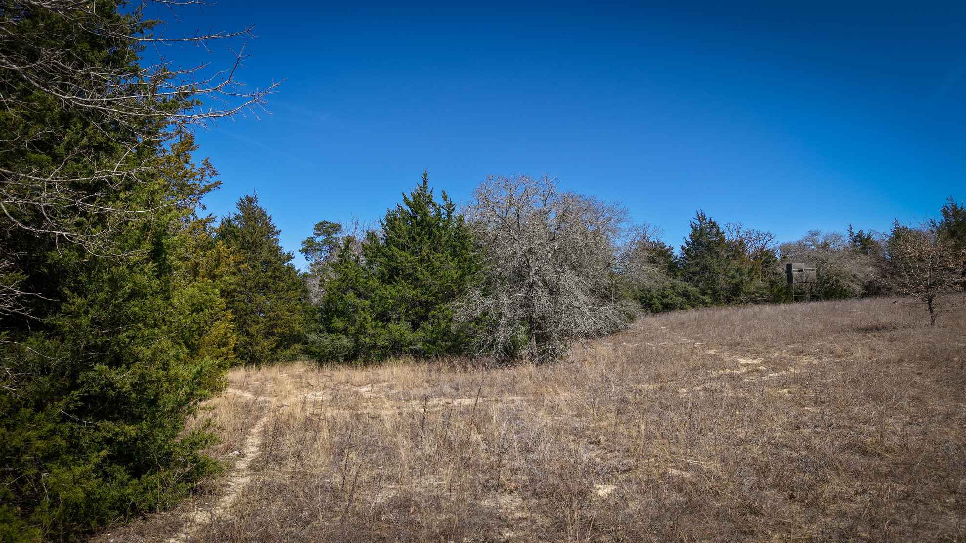Little Bluff Ranch offers excellent habitat for wildlife and supports a variety of game, including whitetail deer, feral hogs, dove, and waterfowl. Game trails and thick cover are found throughout the property, and the wooded creek bottoms provide ideal locations for archery stands during the fall and winter seasons.