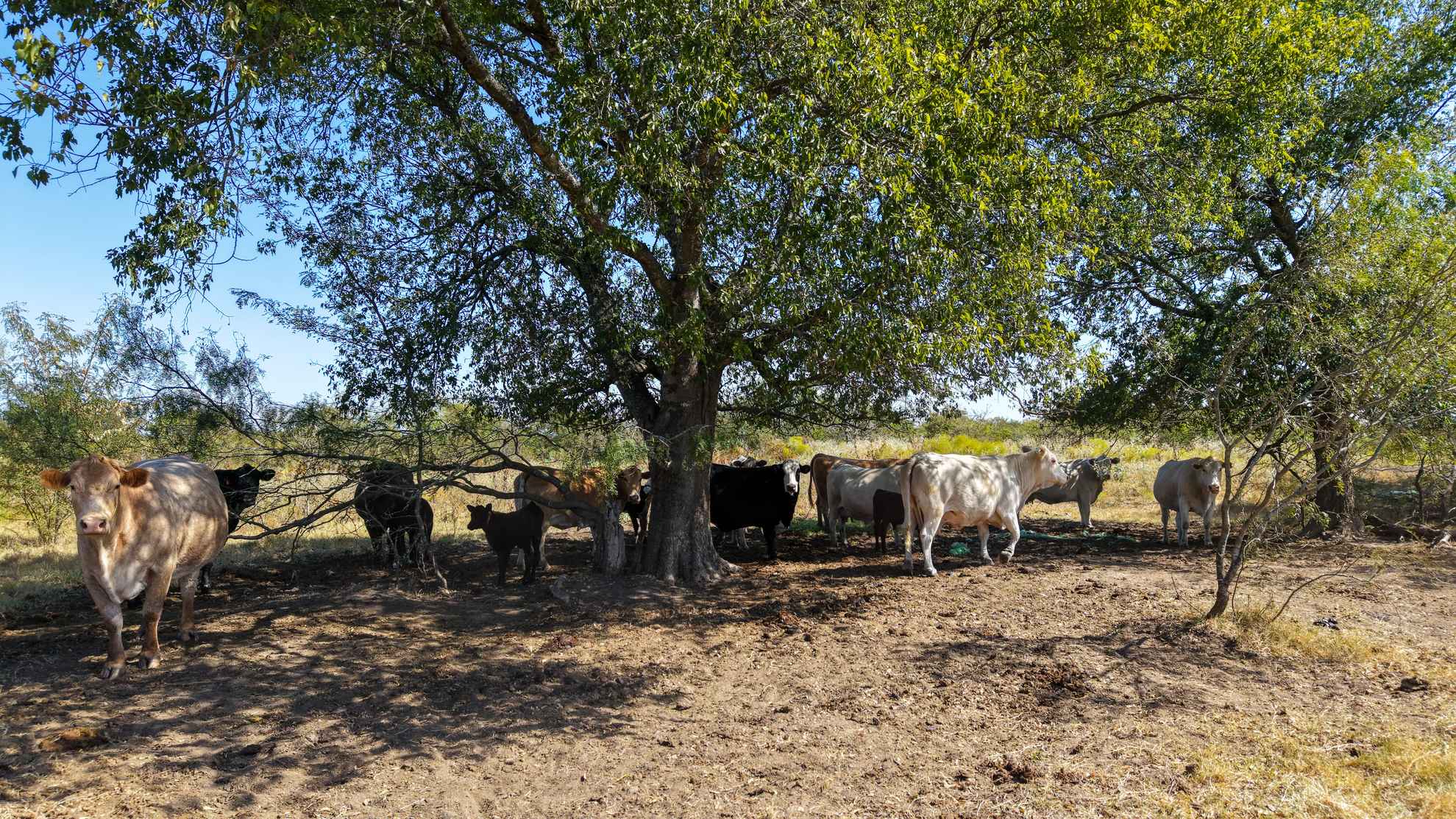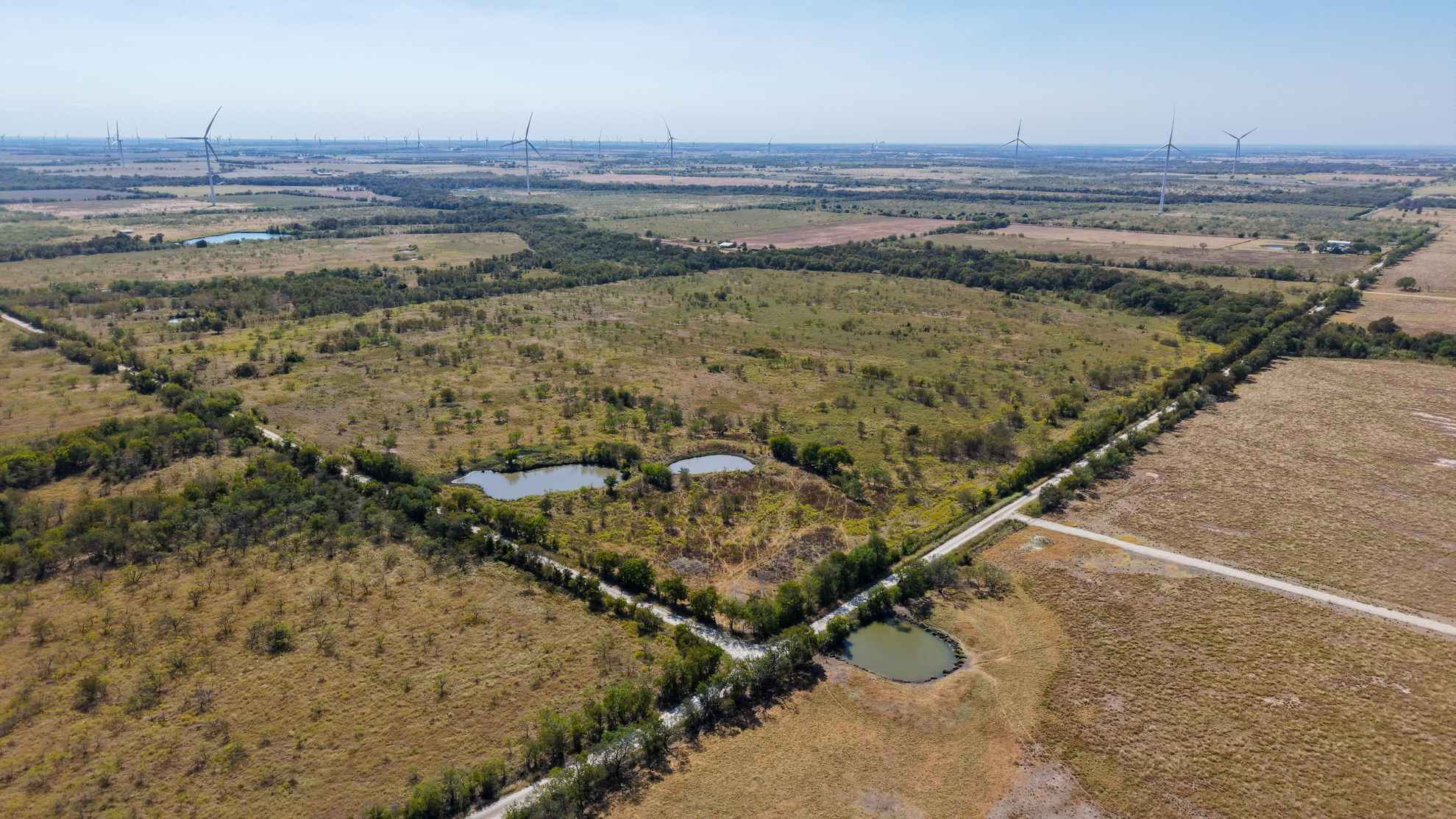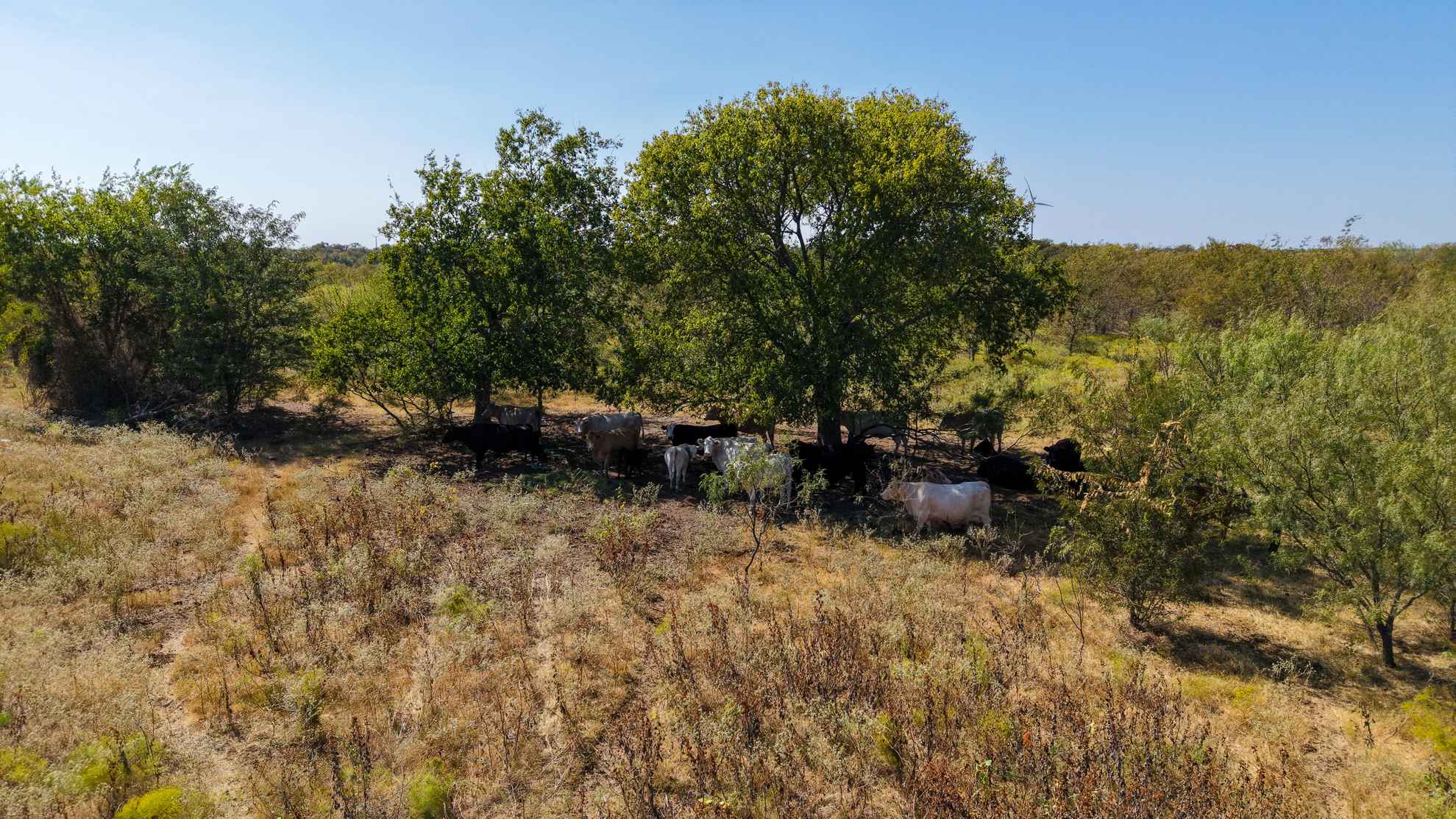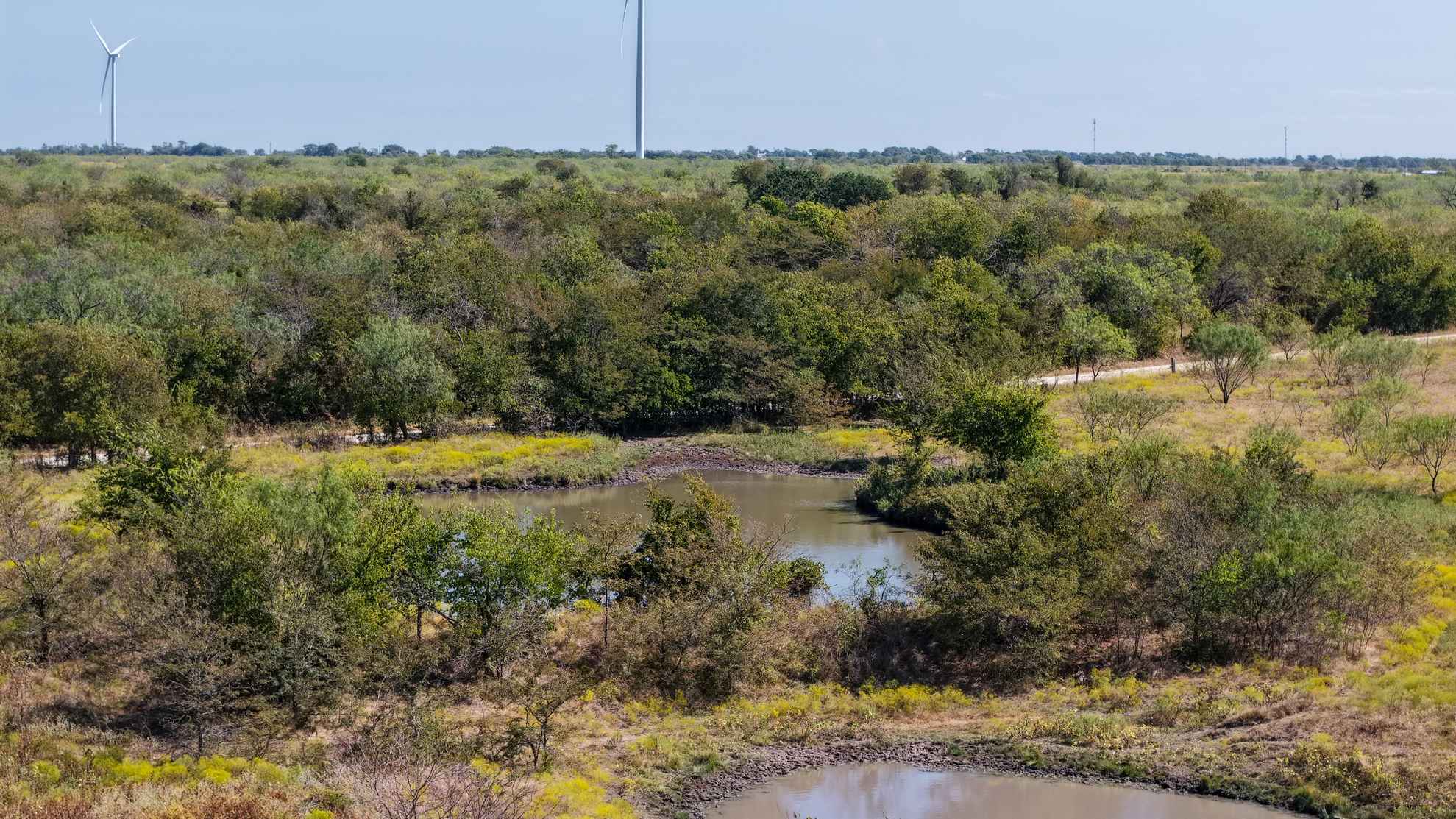 The ranch provides abundant habitat and natural resources for wildlife, supporting species such as whitetail deer, feral hogs, dove, and waterfowl.