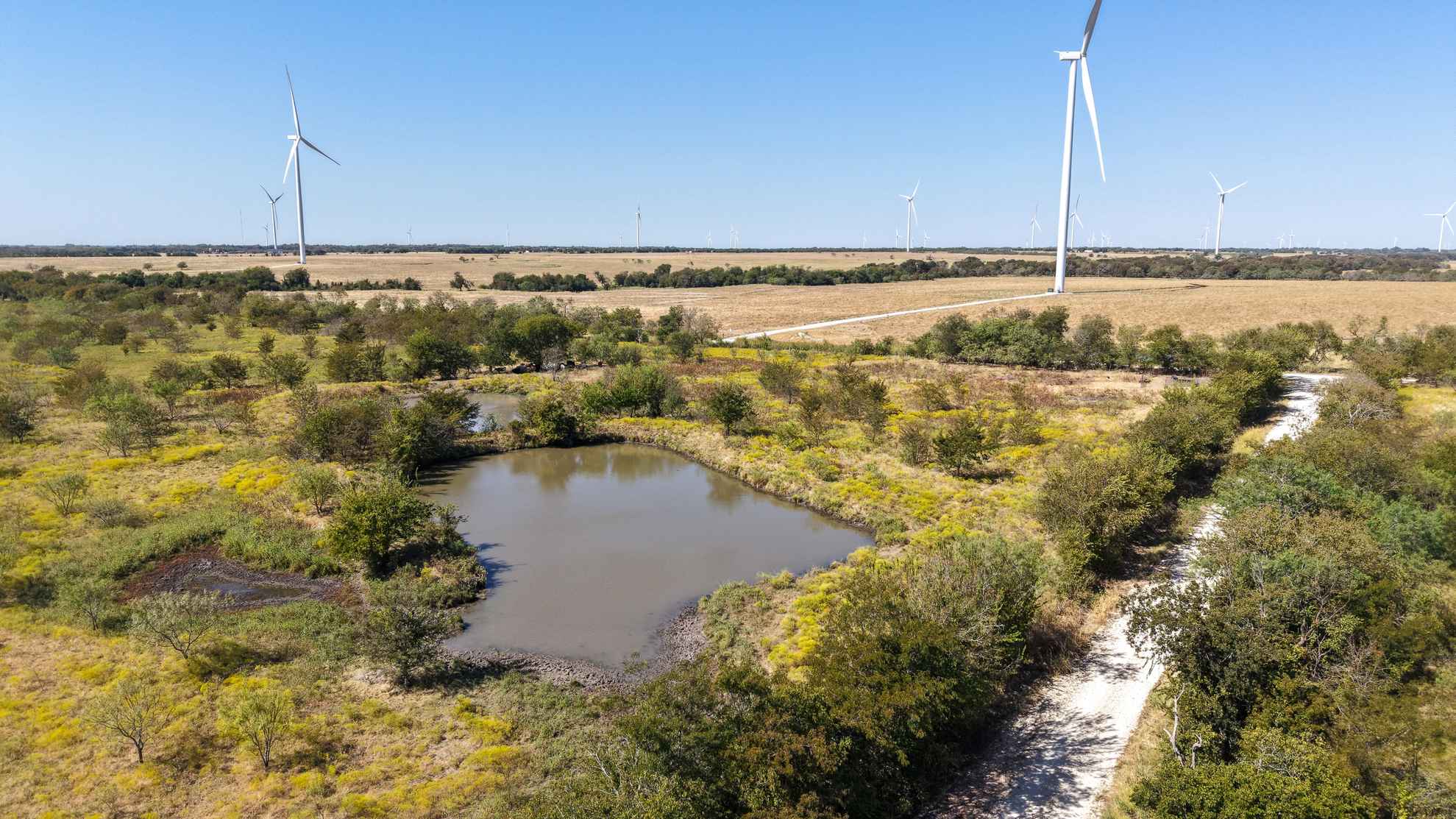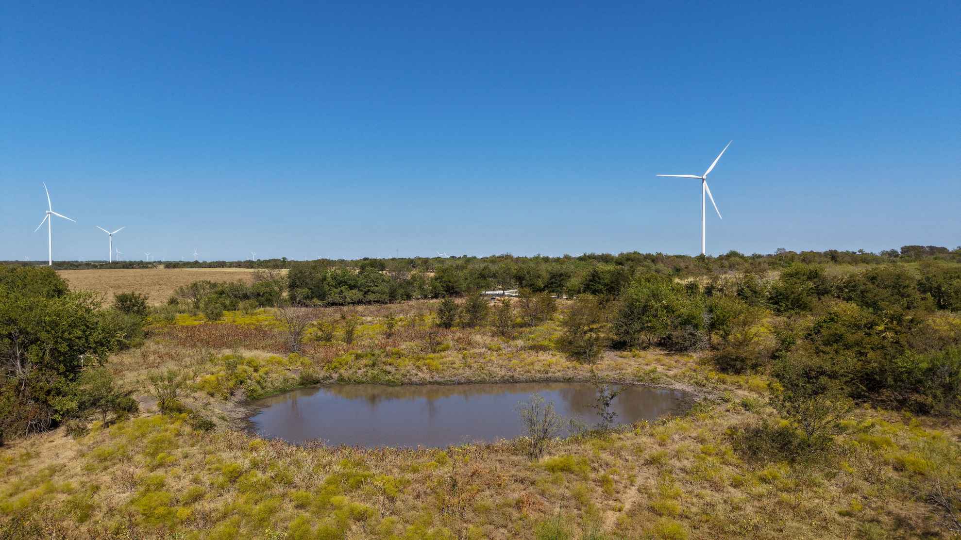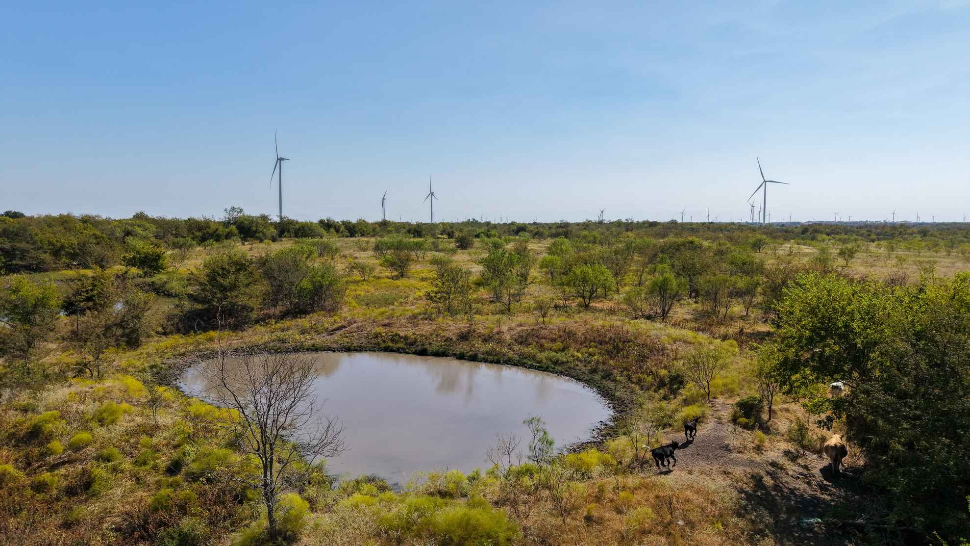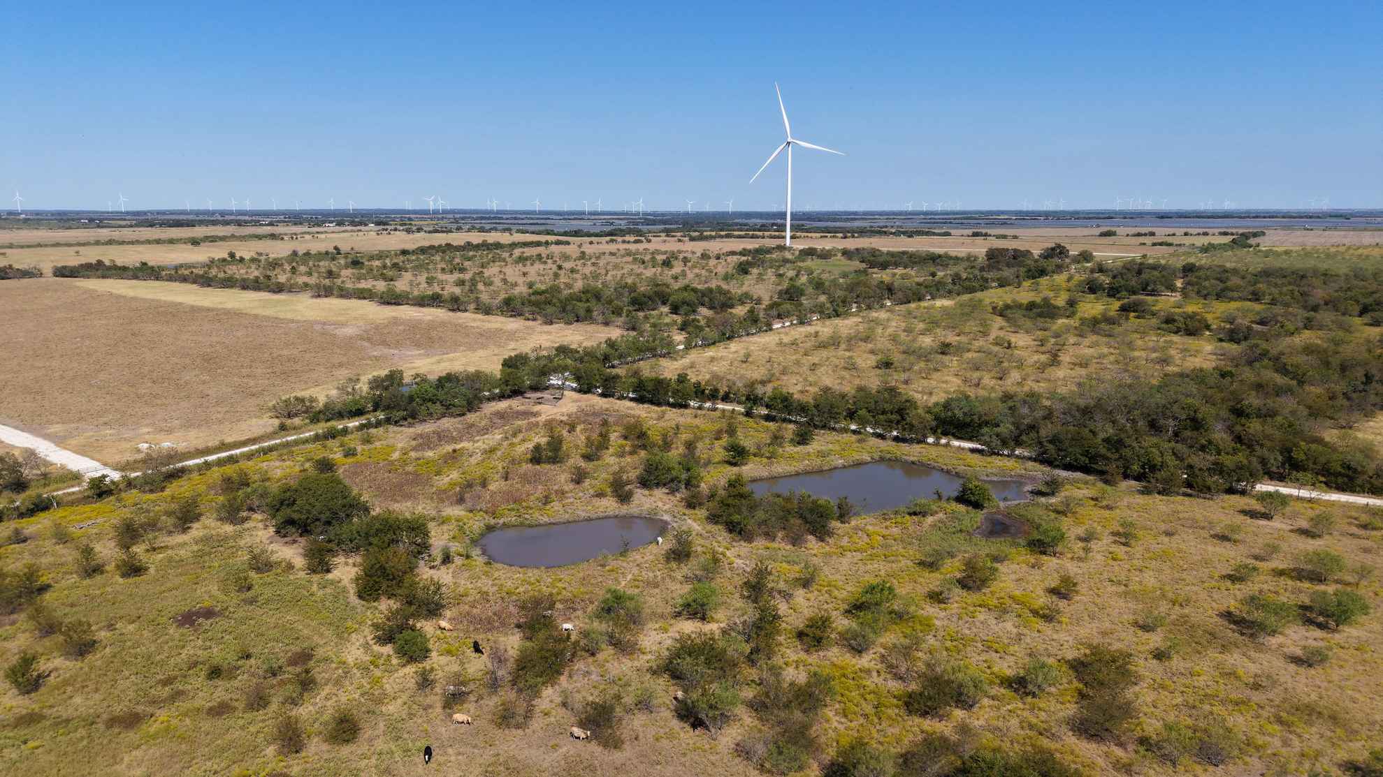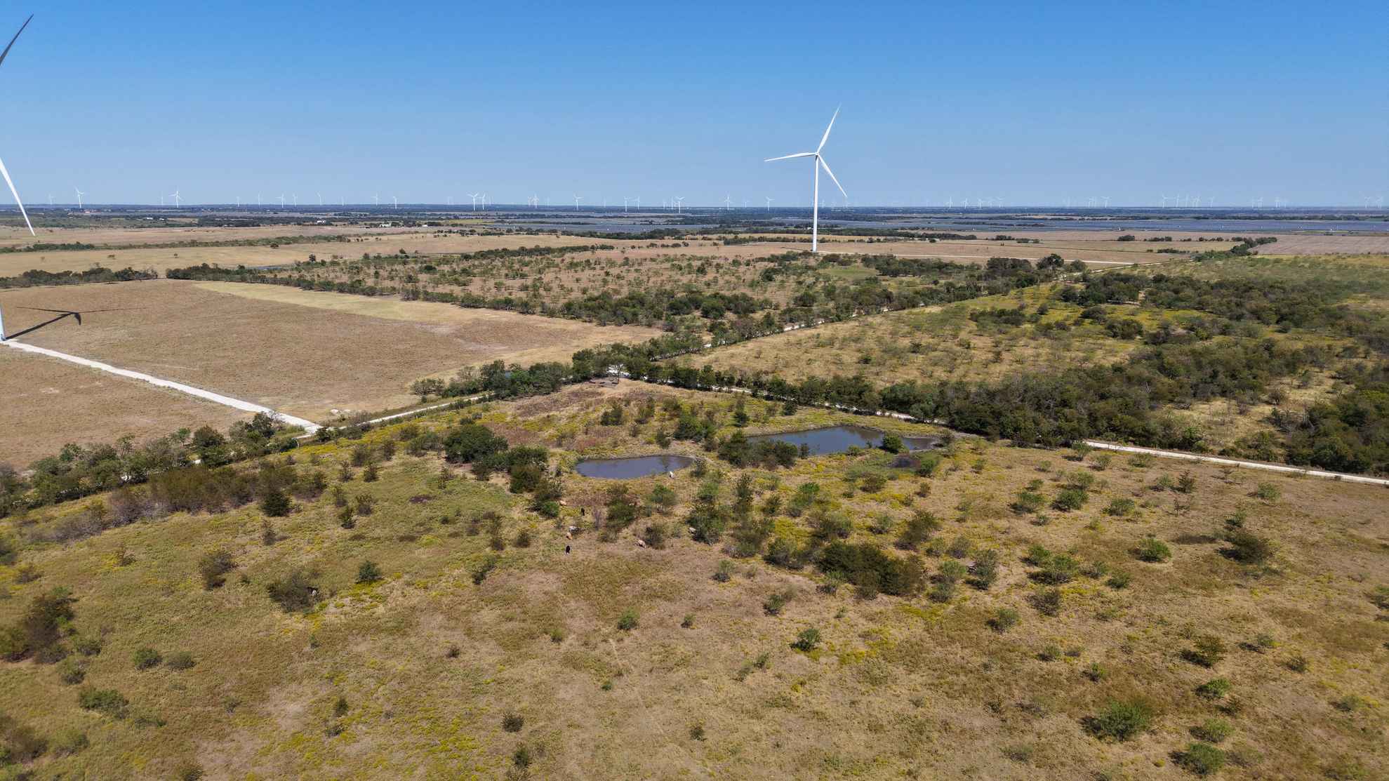 The ranch provides abundant habitat and natural resources for wildlife, supporting species such as whitetail deer, feral hogs, dove, and waterfowl.