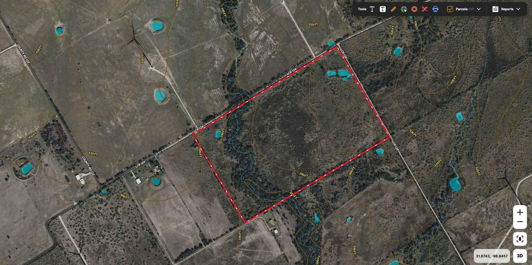 The property is located in the northwestern quadrant of Limestone County, a few miles north of HWY 84, with frontage along both LCR 124 and LCR 128. Conveniently positioned ~12 miles from Mart, ~20 miles from Waco, ~115 miles from Austin, and ~90 miles from Dallas.