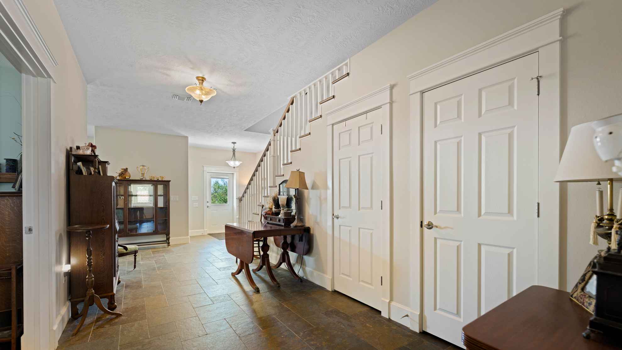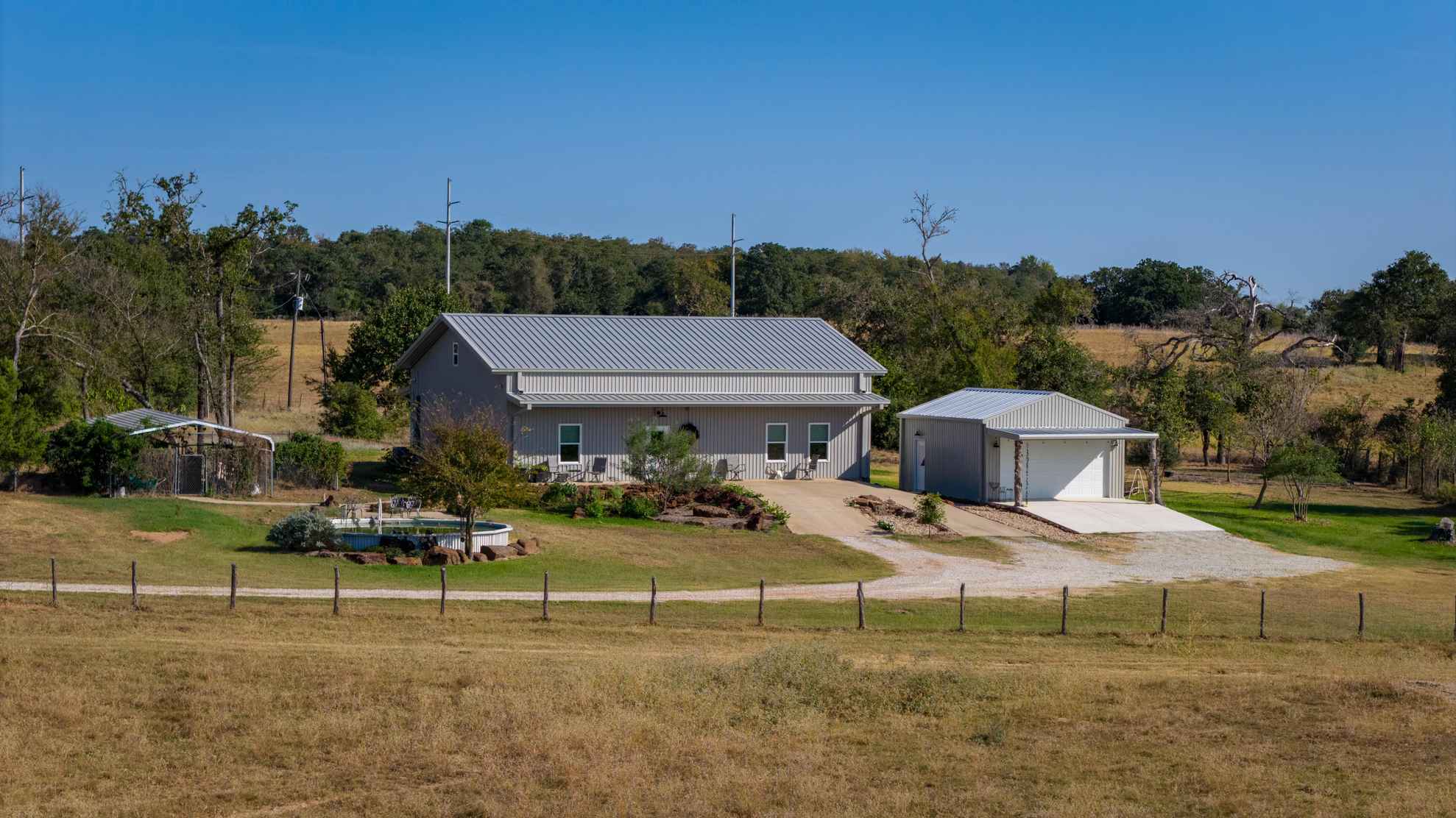 The improvements on Iron Bridge Ranch are in excellent condition and were thoughtfully designed for both comfort and functionality. A gated entrance and well-maintained gravel drive lead to the living quarters located near the front of the property off Providence Road. The centerpiece is a 40x55 barndominium built in 2019 (approximately 2,200 sq. ft.) featuring a spacious kitchen and living area, large master suite with private bath, mudroom with shower and half bath, and two versatile upstairs bonus rooms. The residence is surrounded by well-manicured landscaping, offering beautiful countryside views and a covered front porch perfect for enjoying morning sunrises or evening sunsets. A new detached two-car garage provides ample storage and convenience.