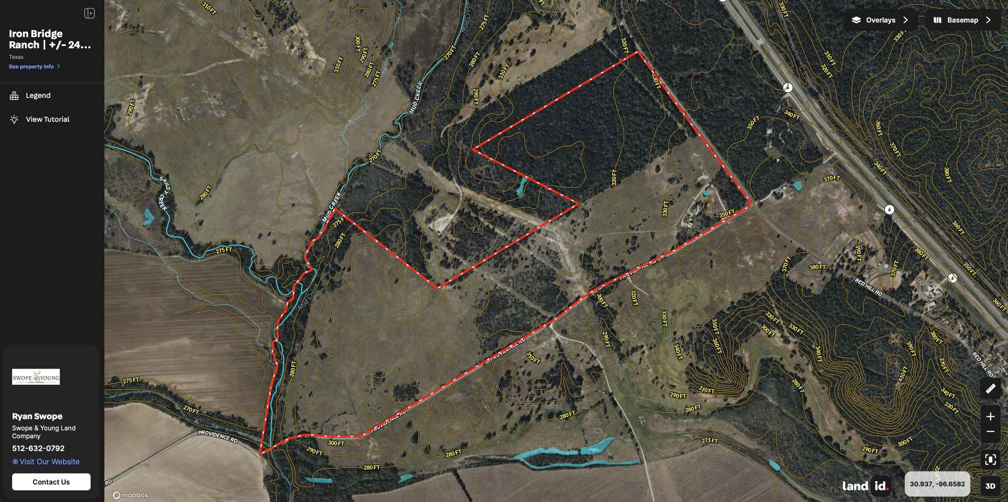 Located between Bryan/College Station and Waco in the heart of Robertson County, the Iron Bridge Ranch offers an exceptional opportunity to own a premier 245 acre property with outstanding access and investment potential. The ranch boasts over 1.75 miles of county road frontage, including 2,300 feet of paved frontage on Red Hill Road and more than 5,500 feet along Providence Road. Conveniently situated, the ranch is approximately 30 minutes to Bryan/College Station, 1 hour and 30 minutes to Houston or Austin, and about 2 hours to Dallasmaking it ideally positioned for a weekend retreat, full-time residence, or long-term investment.