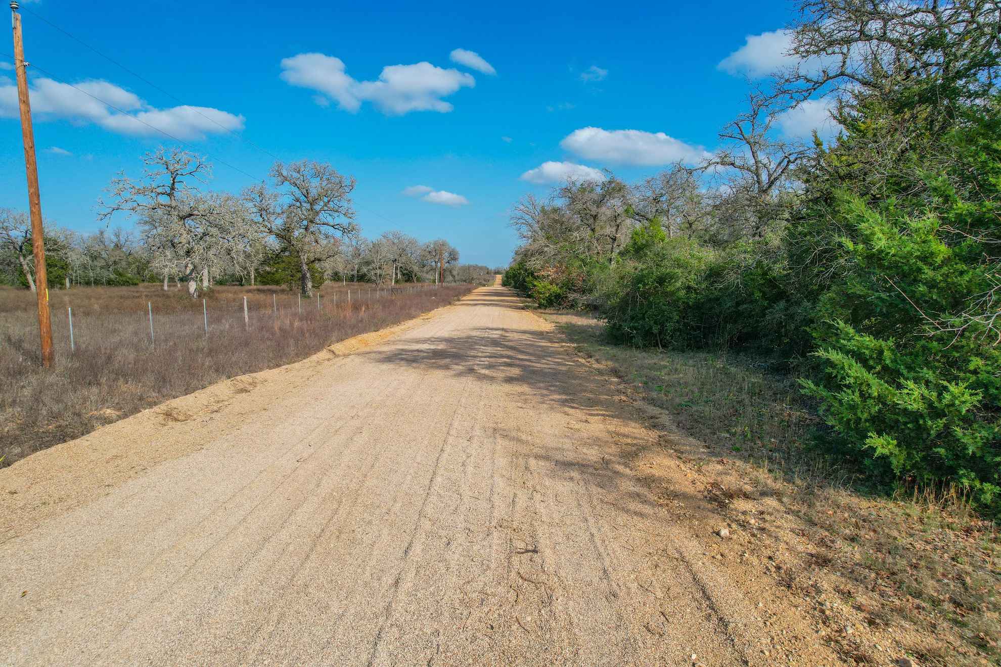 Water is along the road and provided by Southwest Milam Water Supply (buyer to verify availability of meter)